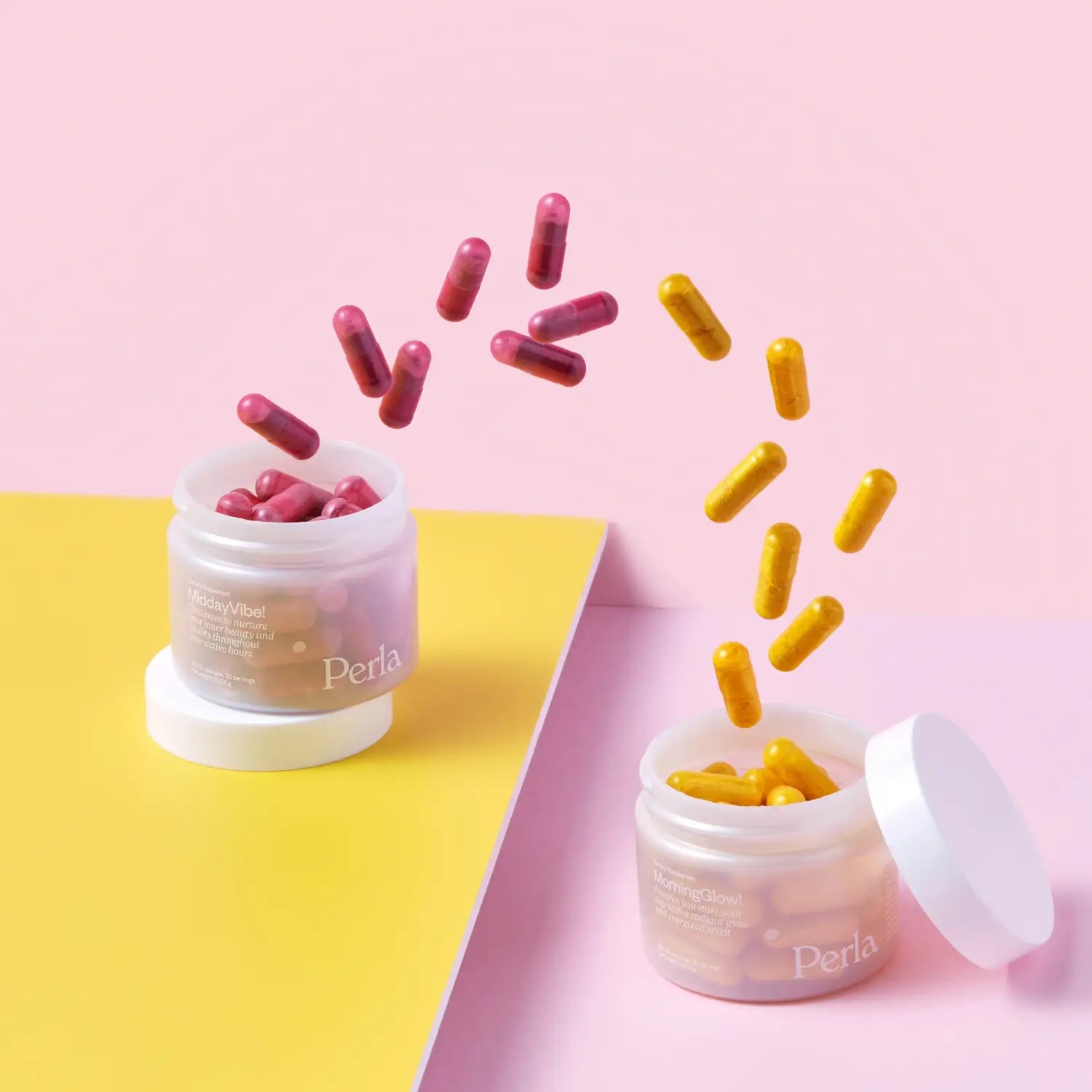 Компоненти комплексу розділені на дві баночки: MorningGlow - для ранкового прийому та MiddayVibe - для денного. Завдяки різним кольорам капсул ви точно не помилитесь, коли яку приймати
